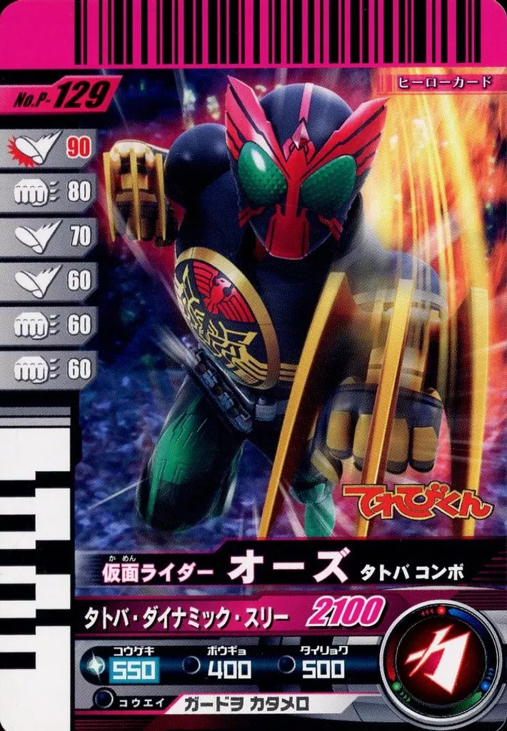 日本名: ガンバライド/プロモ/ヒーローカード/「てれびくん」2010年10月号付録 No.P-129[プロモ]:仮面ライダーオーズ タトバコンボ(てれびくんロゴ)
