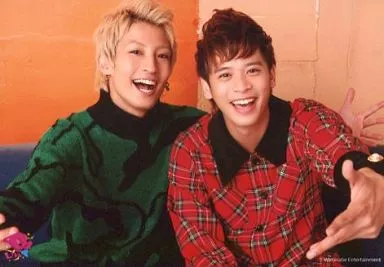 生写真(男)/演员 D2/山口贤贵·陈内将/横型·上半身·衣服绿红格纹·左手布·坐姿·背景橙色/"D2LIVE"/官方生写真
