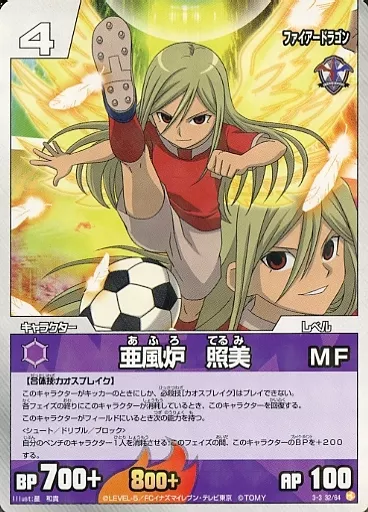 日本名: イナズマイレブンTCG/R/キャラクター/組織/MF/世界への挑戦編 拡張パック第3弾激闘!ファイアードラゴン!(IE-09) 3-3 32/64[R]:亜風炉 照美