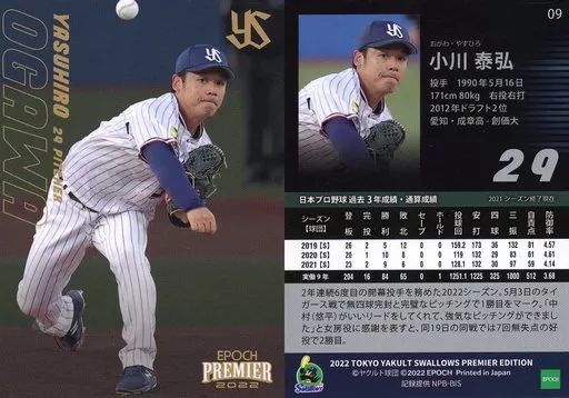 日本名: スポーツ/レギュラーカード/2022 東京ヤクルトスワローズ PREMIER EDITION 09[レギュラーカード]:小川泰弘