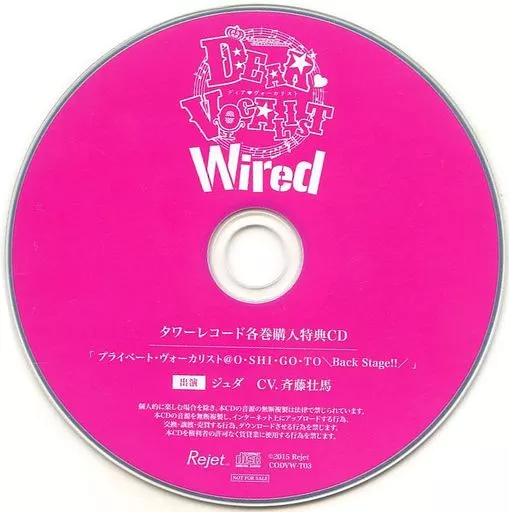 動畫系光盤 廣播劇CD Dear Vocalist Wired條目No.3 Juda(CV:齊藤壯馬)Tower Records特典廣播劇CD<私人的Vocalist O・SHI・GO・TO-Back Stage!-"