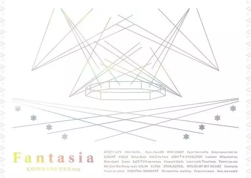 [1][2](1)Overture(2)DIRTY LUV(3)SHE SAID.(4)Real Face#2(5)ONE DROP(6)Keep the faith(7)0至一二(8)FLIGHT(9)GOLD(10)Wild Rose(11)FACE to Face(12)DON'T U EVER STOP(13)Lament(14)未完成(龟梨和也獨奏曲)(15)New sight(中丸雄一獨奏曲)(16)Juda(上田龍也獨奏曲)(17)KAT-TUN的現場(18)Perfect Date(19)Love Lots Together(20)透明的早晨(21)We Just Go Hard(feat.AK-69)(22)ELIZA(23)STAR RIDER(24)WILDS OF MY HEART(25)Fantasia(26)想要在夢中相遇〈Encore〉(27)CRYSTAL MOMENT(28)No主管・主管(29)Peacefuldays(30)Sail on earth[3]特典光盤