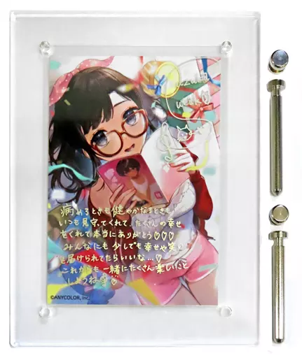 商品解說■<虛擬YouTuber鈴鹿詩子生日2023生日商品全SET>內,『附明信片壓剋力相框』單品。不含其他特典。敬請見諒。【商品詳情】尺寸:框架/約H170mm×W130mm、明信片/約H127mm×W89mm材質:壓剋力、鐵、紙樣式:复製親筆籤名・留言配件:插針2支、其他金屬零件2支