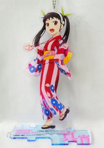 產品解說■在<仙台市動畫節>舉辦的<終物語×Animate咖啡館>的合作咖啡館銷售的"BIG壓剋力Stand掛件"。將忍野忍、八九真宵、斧乃木餘接的台座連接在一起。【商品詳情】尺寸:[本體]全長約19 cm、[台座]約4.5×12.5 cm附屬品:珠鏈、台座