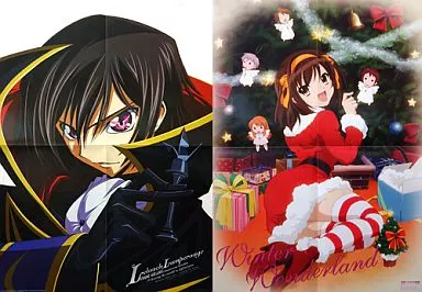產品解說■人氣動畫【Code Geass反叛的魯路修】和【涼宮春日的憂鬱】的雙麵海報。動畫之2007年1月號贈品B3尺寸