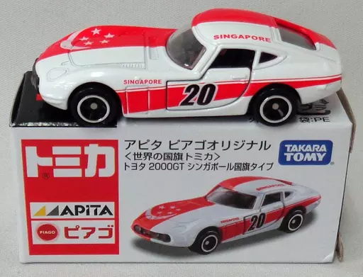 ■「解說TOMICA世界上的國旗系列"裏有1/59豐田2000 GT新加坡國旗款式(紅色×白色)。【商品詳情】尺寸:全長約7.5 cm