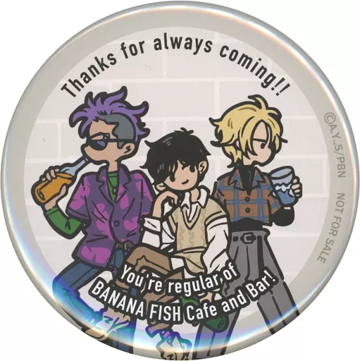 日本名: バッジ・ピンズ アッシュ&英二&ショーター 缶バッジ 「BANANA FISH cafe & ber」 紙コースター持参特典
