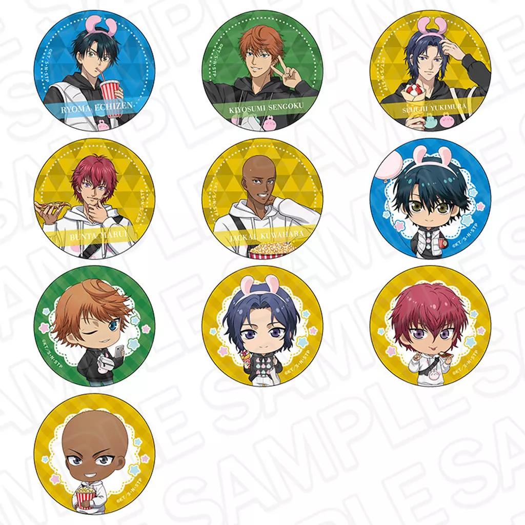 商品解說<新網球王子×橫濱世界科斯莫>商品徽章共10種SET。【商品詳情】越前龍馬(等身、Q版)千石清純(等身、Q版)幸村精市(等身、Q版)丸井文太(等身、Q版)傑剋桑原(等身、Q版)尺寸:直徑約5.6 cm