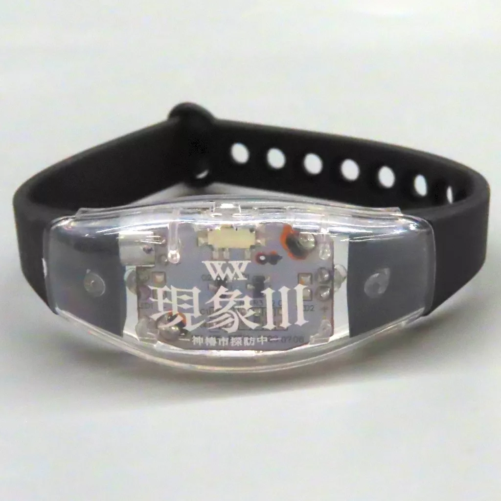 產品解說■這款手鐲會隨著聲音而發光。在家裏也能享受現場演出的樂趣。【商品詳情】尺寸:手腕圍17 cm~(有伸縮功能)材質:ABS樹脂、PCB、矽膠使用電池:CR2032×2個