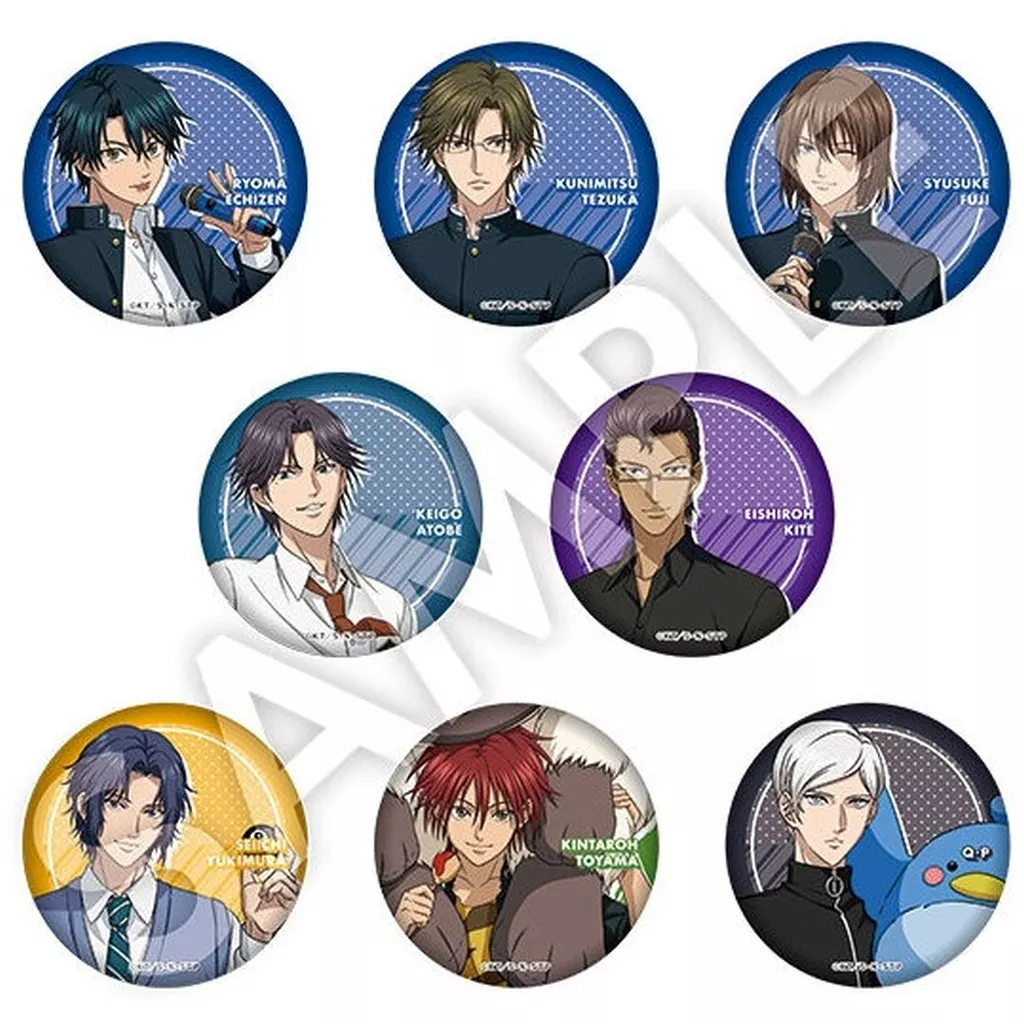商品解説■こちらの商品は、BOX販売(1BOX8個入り)となります。アニメ『新テニスの王子様』×ラウンドワンコラボのグッズが登場!【商品詳細】全8種類サイズ:約φ56mm素材:ブリキ(C)許斐剛/集英社・NAS・新テニスの王子様プロジェクト<ラインナップ>越前リョーマ手塚国光不二周助跡部景吾幸村精市木手永四郎遠山金太郎Q・P