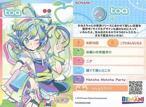 動畫系特雷卡/Change Card/-/Pop'n Music Exterl第二彈 PO23N055/056[更改卡]:Toa