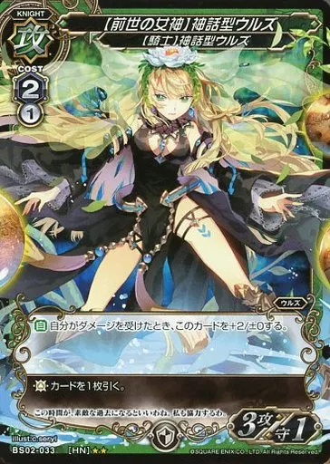 日本名: ミリオンアーサーTCG/HN/騎士/緑/ブースターパック第2弾「蒼の妖精と三人の魔女」 BS02-033[HN]:【前世の女神】神話型ウルズ