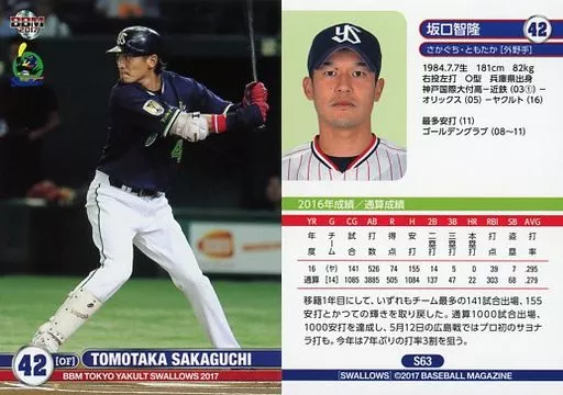 BBM/標準卡/BBM2017東京養樂多燕子 S63[常規卡]:坂口智隆