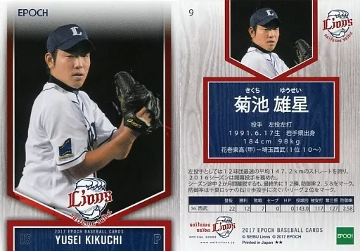 運動/常規卡/EPOCH棒球卡2017埼玉西武獅 9[常規卡片]:菊池雄星(投球)(托胸)