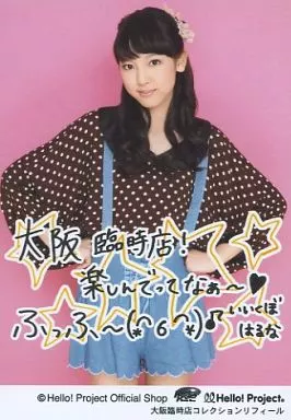 日本名: 生写真(ハロプロ)/アイドル/モーニング娘。 モーニング娘。/飯窪春菜/膝上・衣装黒・青・白の水玉模様・両手腰・メッセージ入り「大阪臨時店! 楽しんでってなぁ~」/大阪臨時店コレクションリフィール
