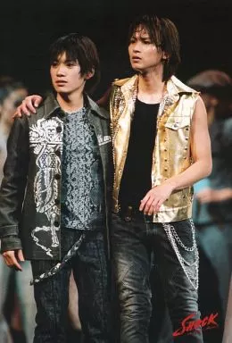 傑尼斯/堂本光一・東新良和/現場照片・膝上・服裝黑色金・肩組・2L尺寸・背景黑色/SHOCK is Real Shock