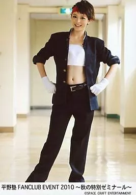 日本名: 生写真(女性)/声優 平野綾/全身・制服黒・両手腰・赤のハチマキ・サラシ・笑顔/平野塾FANCLUB EVENT 2010 ~秋の特別ゼミナール~