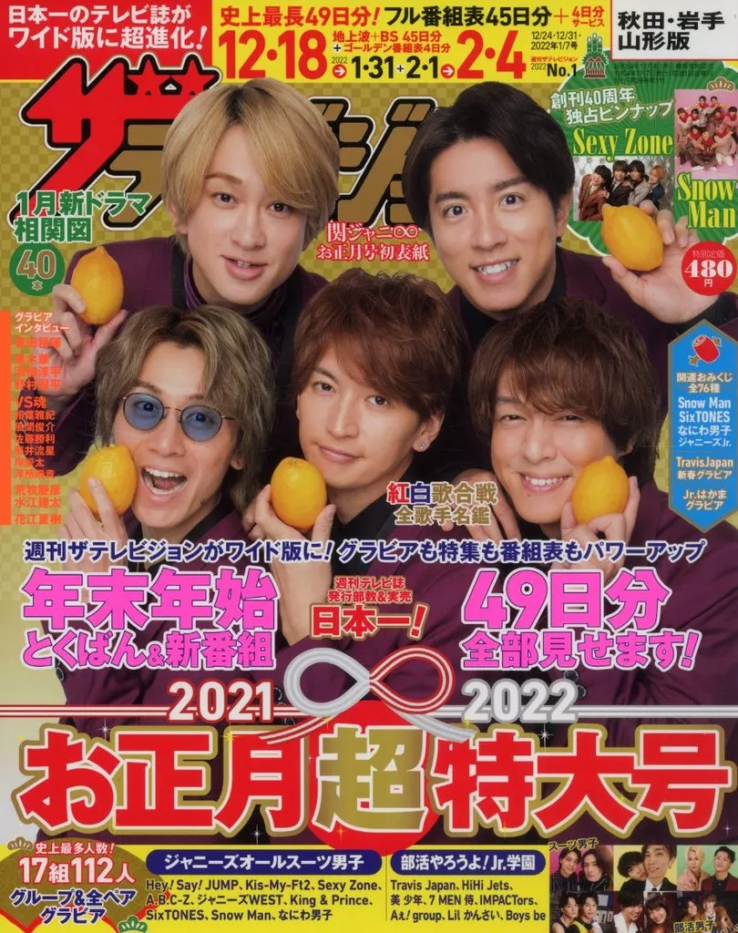 日本名: 芸能雑誌 付録付)ザ・テレビジョン秋田・岩手・山形版 2022年1月7日号 芸能